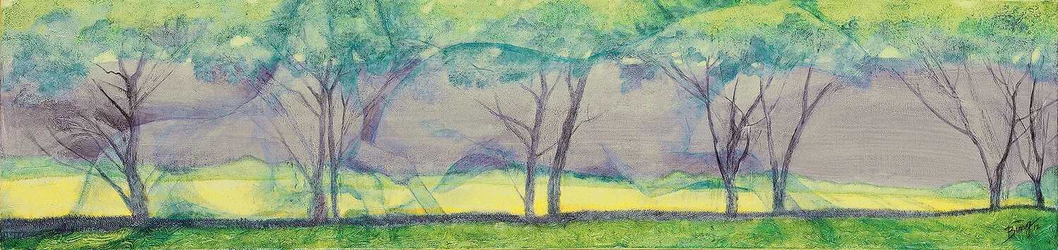 Marian Bingham, Pines, 2012, Oil on Canvas, 10" x 39"
