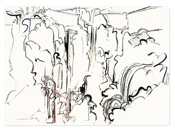 Meighen Jackson, Below the Falls, 2014, Mixed Media: Ink and Kozo Papers on Canvas, 42" x 50"