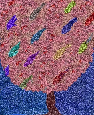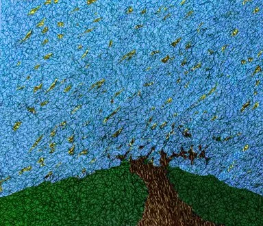 Kaethe Kauffman, Blue Tree, 2023, Ink, Archival Pigments, 27”x22”x1”, $1400
