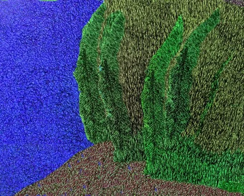 For me, sitting near vegetation is restful and a wonderful place to meditate. I often draw a large bush or tree that provides shade, majesty and peace that helps calm my mind.