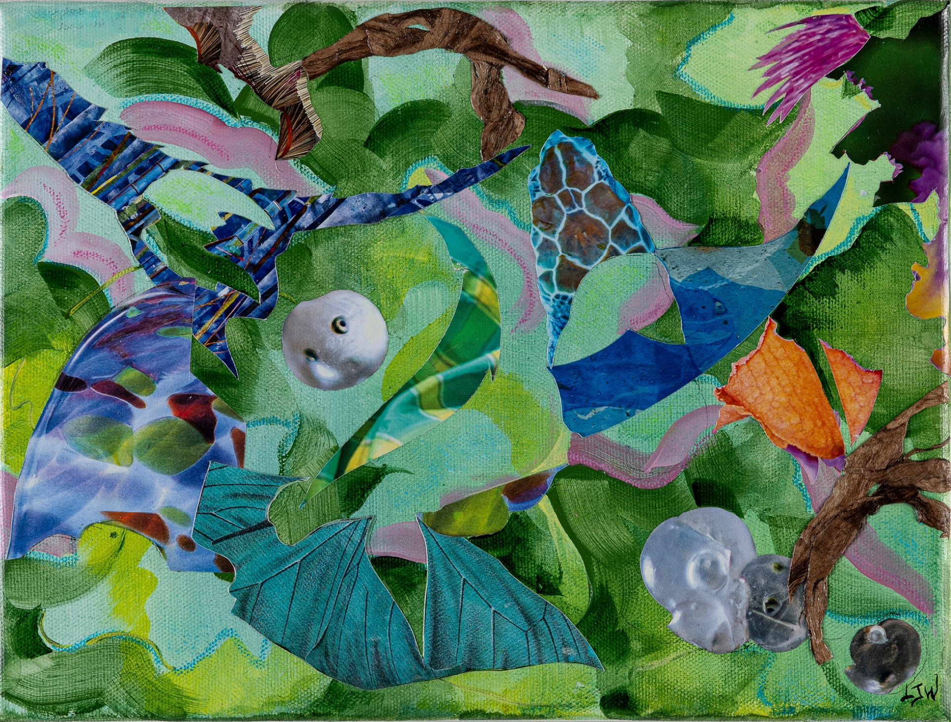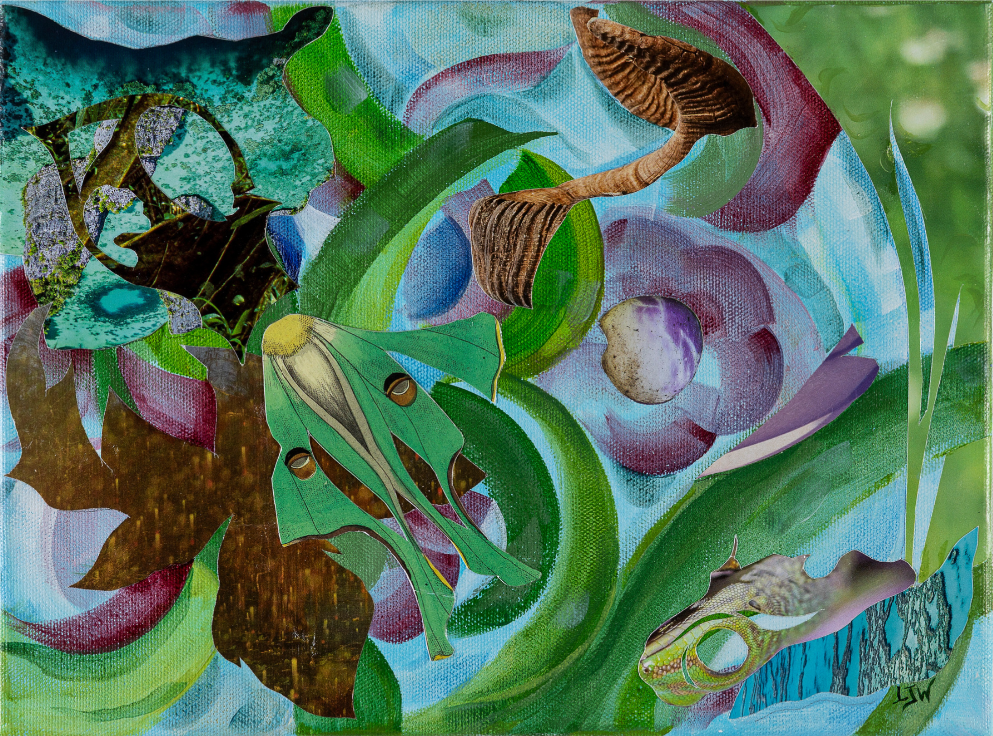Lauren Worth, FLUX 8, 2026, Mixed Collage on Canvas, 10 × 10 × 1 1/4 in, $1,000