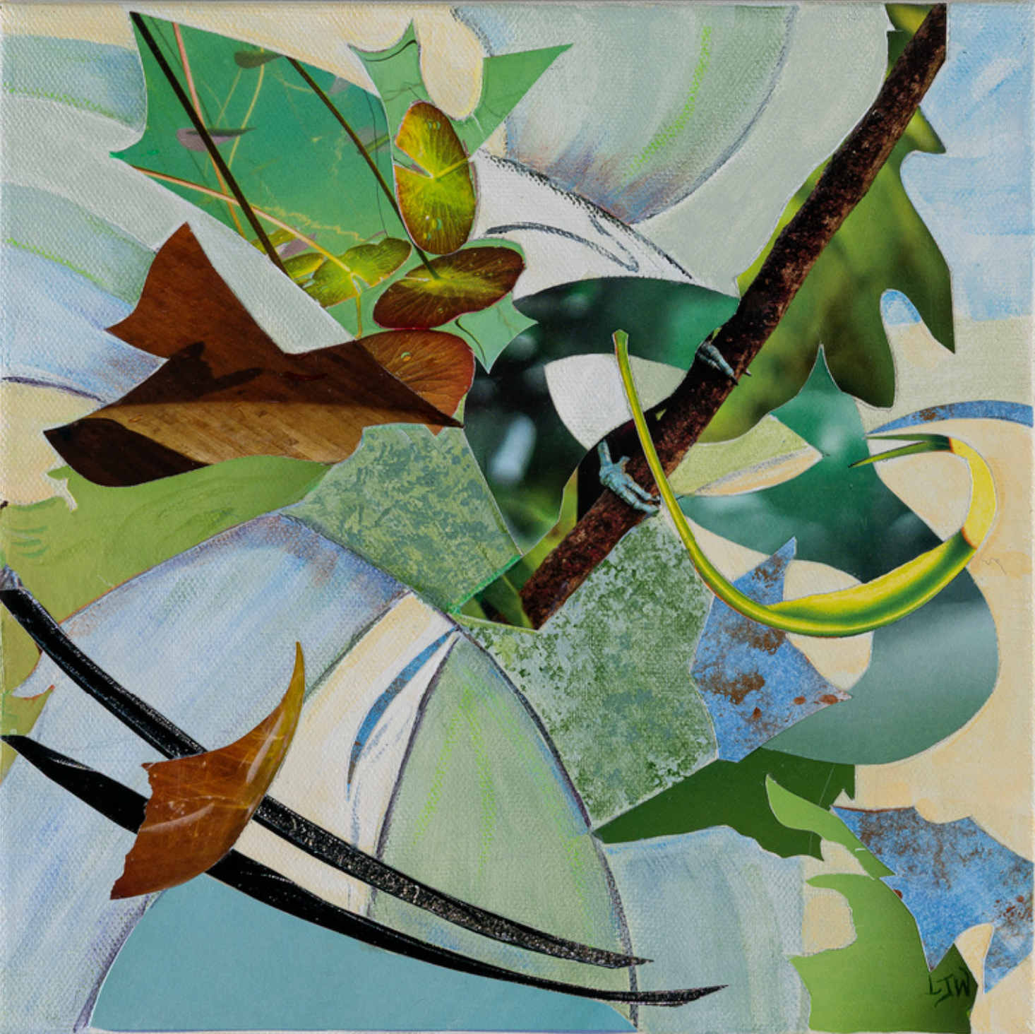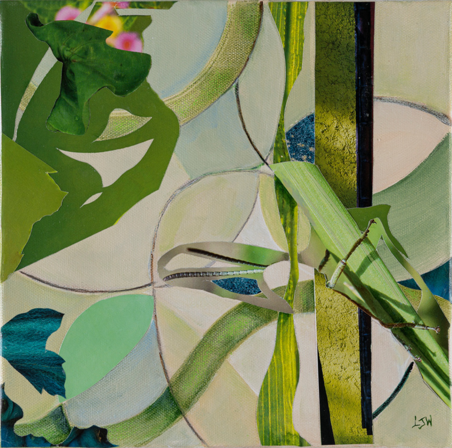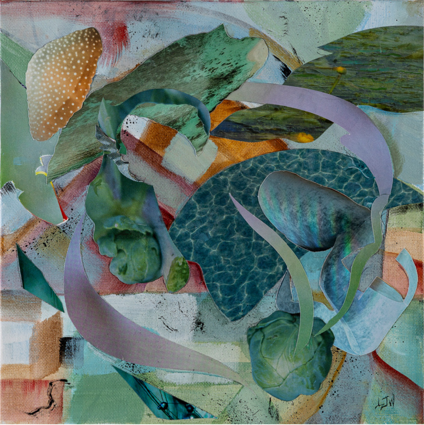 Lauren Worth, FLUX 15, 2026, Mixed Collage on Canvas, 10 × 10 × 1 1/4 in, SOLD