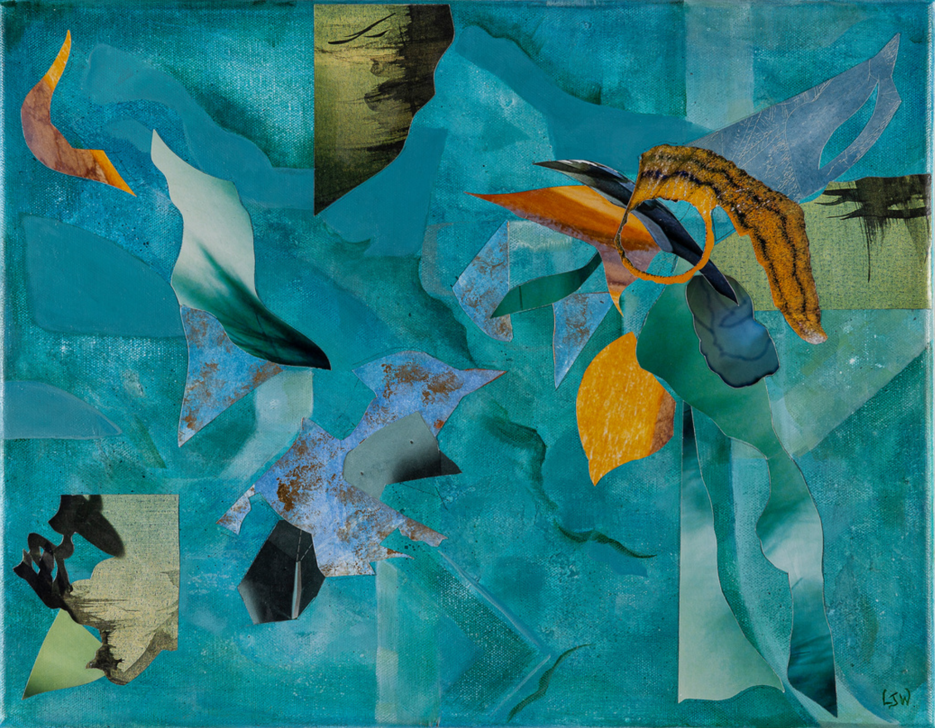 Lauren Worth, CRACKED EARTH, CRACKED SKY, 2023, Mixed Collage on Canvas, 50”x34”, $6,000