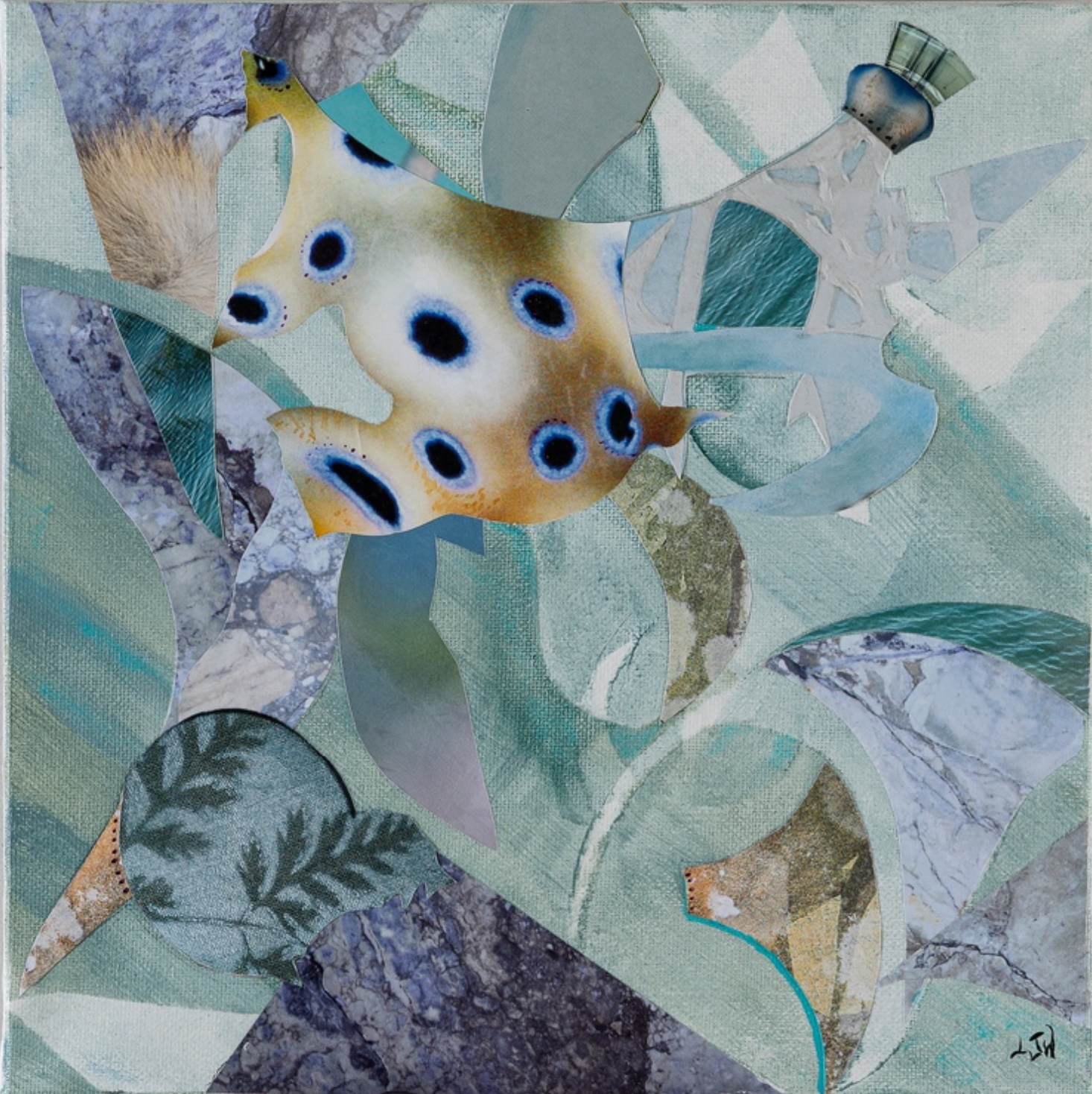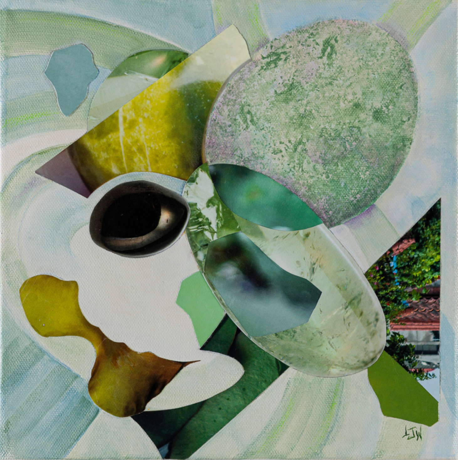 Lauren Worth, FLUX 12, 2026, Mixed Collage on Canvas, 10 × 10 × 1 1/4 in, SOLD